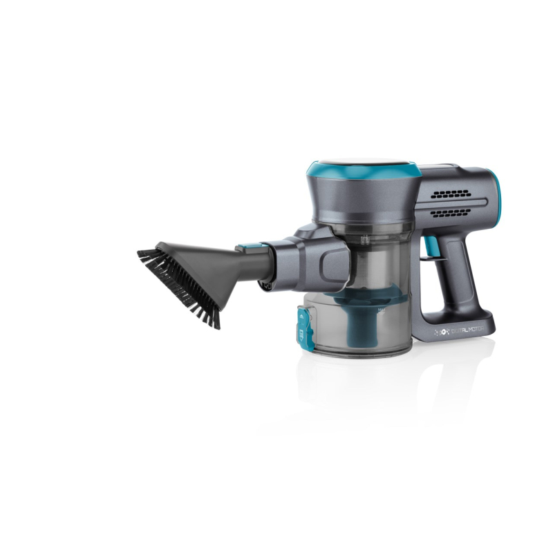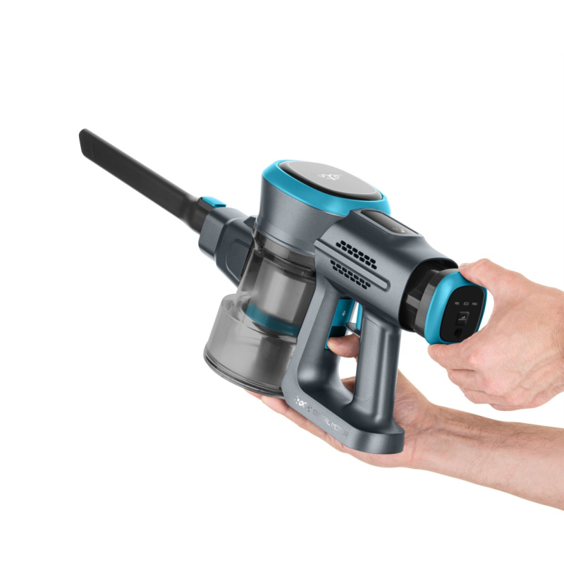 Tyčový a ručný vysávač 2 v 1 , Digitálny motor, 3 stupne výkonu, Všetky typy podláh, Vhodný aj pre alergikov, Li-Ion batéria 25,2, Doba chodu na nízkom stupni : 40 minút, Doba nabíjania : 5 hodín, HEPA filter, Hlučnosť 78 dB, Plastová zberná nádoba s objemom 0,6 l, LED osvetlenie, Indikátor nabíjania, Držiak na stenu , Typ filtrácie: cyklónový , Osvetlenie na hubici: áno, Elektrická rotačná kefa,Praktický a ľahko skladovateľný, Rozmery : Šírka:25.5 cm Výška:110.5 cm Hĺbka:21.5 cm
