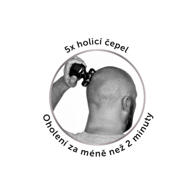 Oholenie hlavy nebolo nikdy rýchlejšie ani jednoduchšie vďaka 5 holiacim čepeliam. V dôsledku vyššej rýchlosti oholíte o 60 % väčšiu plochu pomocou kruhových i lineárnych pohybov. Celú hlavu tak oholíte za menej ako 2 minúty. Flexibilná hlava a krk prístroja sa ľahko prispôsobujú vašim kontúram hlavy, takže sa môžete oholiť jednoducho, pohodlne a úplne hladko.